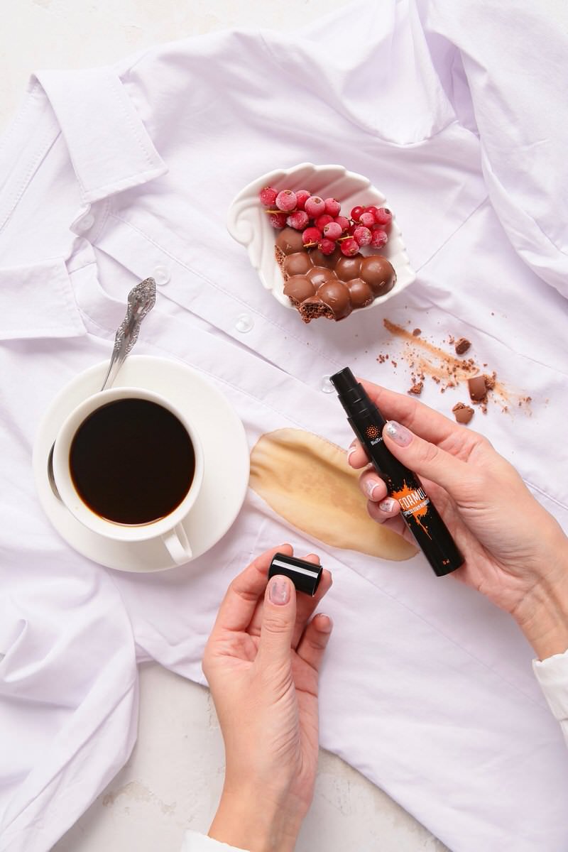 Компактный экспресс-пятноочиститель-спрей BioTrim X-Formula выручит в затруднительной ситуации. Способствует удалению с текстиля свежих загрязнений от кофе, чая, масла, вина, соусов, фруктов, шоколада, косметики, чернил.