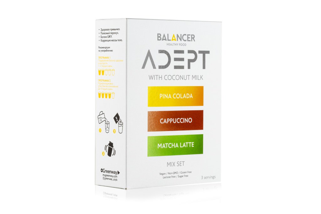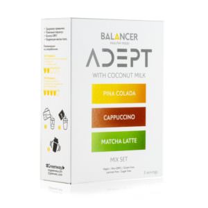 BALANCER ADEPT — первые коктейли на кокосовом молоке, созданные для веганов, людей с непереносимость лактозы и всех, кто хочет употреблять больше растительной пищи. Не содержат лактозу, сахар, глютен, ГМО, ферменты и мальтодекстрин.