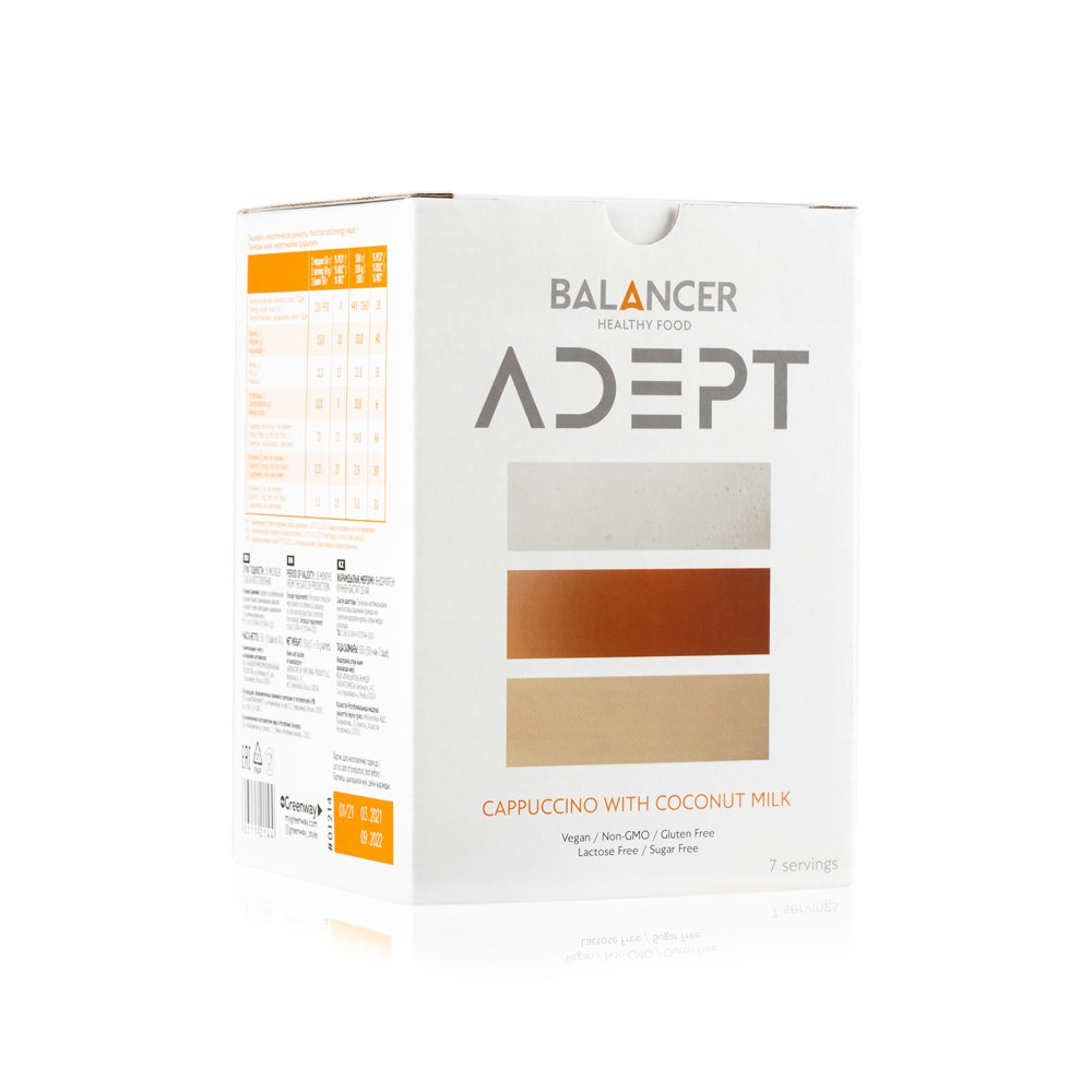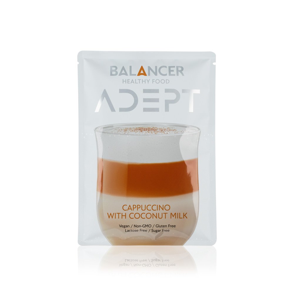 BALANCER ADEPT – первые коктейли на кокосовом молоке, созданные для веганов, людей с непереносимость лактозы и всех, кто хочет употреблять больше растительной пищи. Не содержат лактозу, сахар, глютен, ГМО, ферменты и мальтодекстрин. Коктейль «Капучино» с насыщенным кофейным вкусом и бодрящим ароматом заряжает энергией на весь день и дарит приятное насыщение на несколько часов.