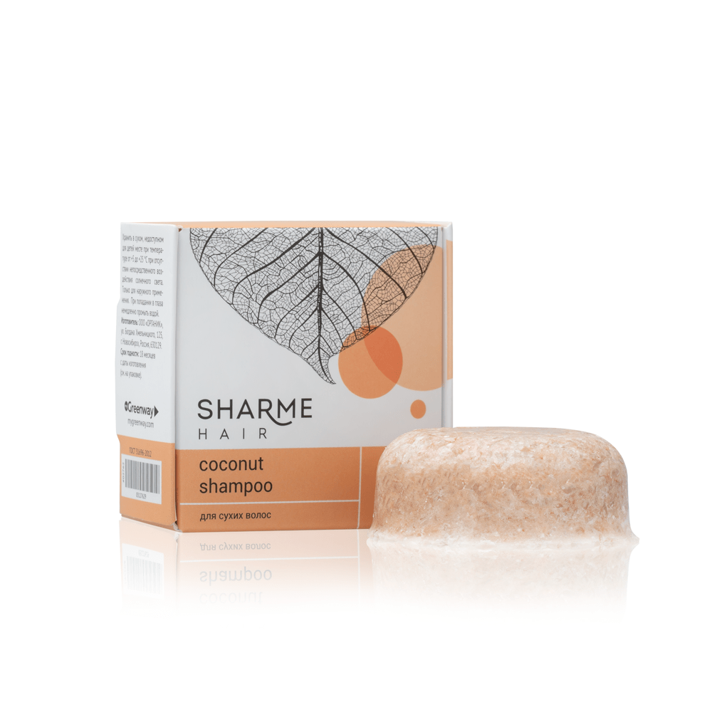Sharme Hair Coconut — натуральный твердый шампунь, созданный для ухода за сухими волосами. Он обеспечит увлажнение и питание сухих, ломких и ослабленных волос. Вы забудете о перхоти, тусклом цвете волос, посеченных кончиках. Ваши локоны перестанут электризоваться, будут легко расчесываться и укладываться, станут блестящим, здоровыми и ухоженными.
