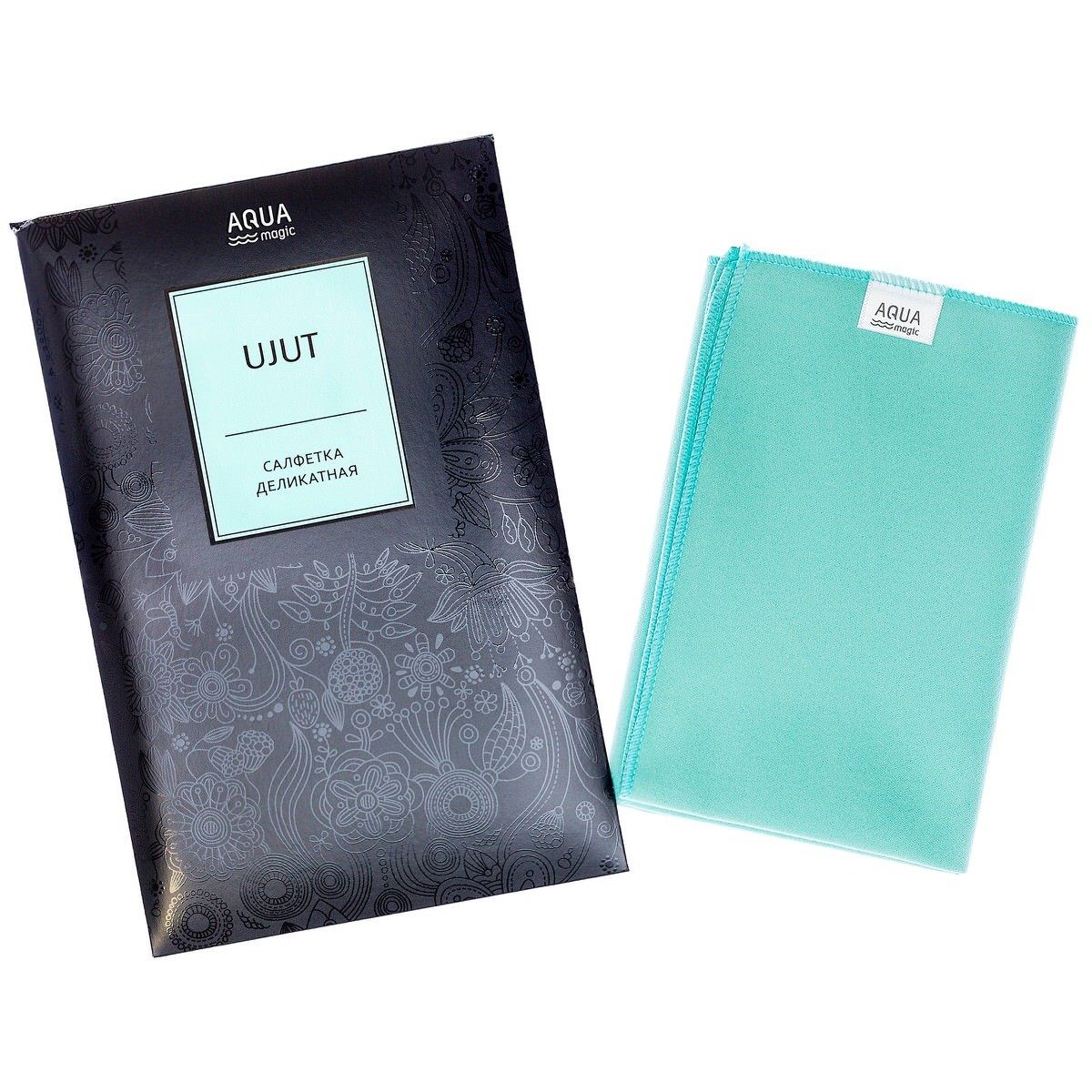 Деликатным поверхностям нужен особый уход. Аккуратная, бережная уборка в доме обеспечена с салфеткой AQUAmagic Ujut. Она не оставляет разводов и пятен, а также не деформирует хрупкие поверхности.