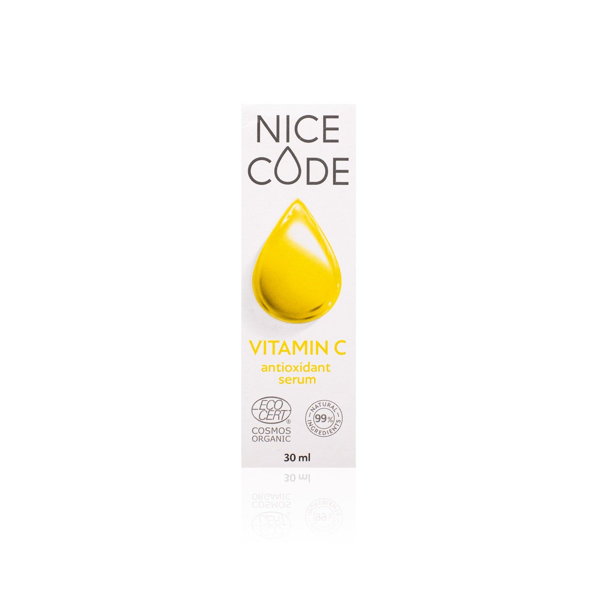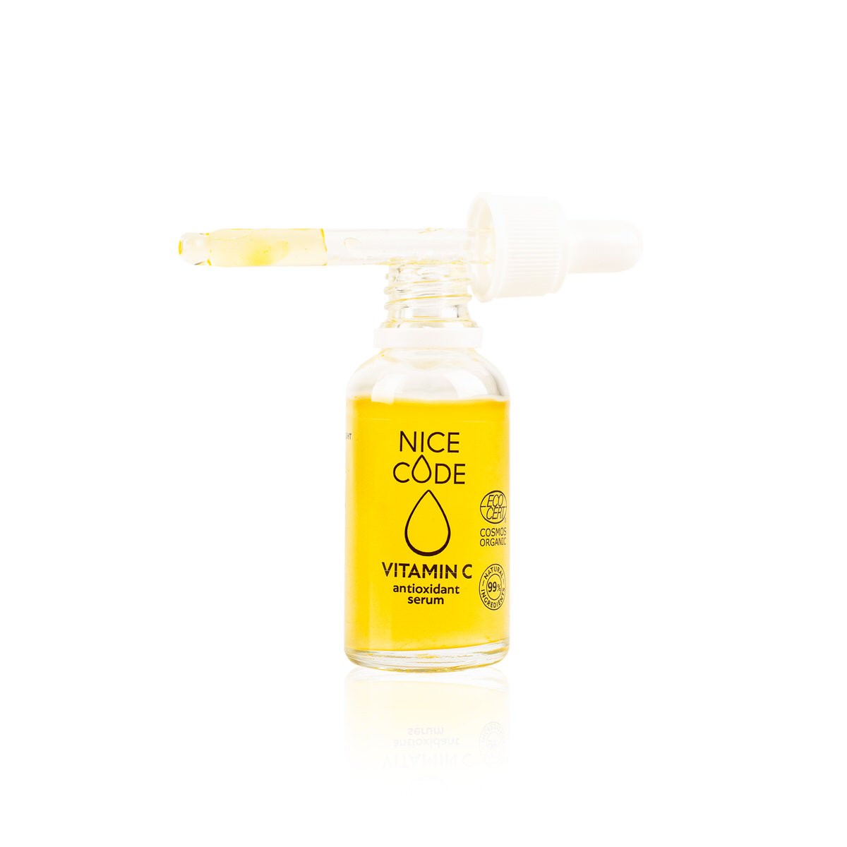 Активный антиоксидантный комплекс сыворотки NICE CODE VITAMIN C antioxidant serum предотвращает преждевременное старение, усиливает защитный барьер кожи и способствовать естественному увлажнению.
