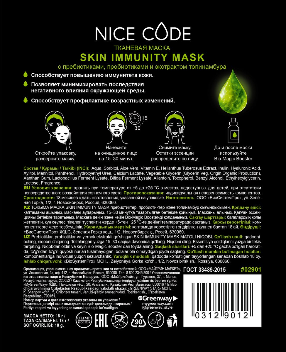 Очистите кожу лица. Вскройте пакет с маской, разверните ее и плотно распределите маску по лицу на 15–30 минут до полного впитывания. Снимите маску, а остатки эссенции вбейте в кожу похлопывающими движениями. Применяйте маску 1–2 раза в неделю и по необходимости. Маска не требует смывания. До и после применения маски рекомендуется использовать спрей Bio Magic booster от Nice Code.