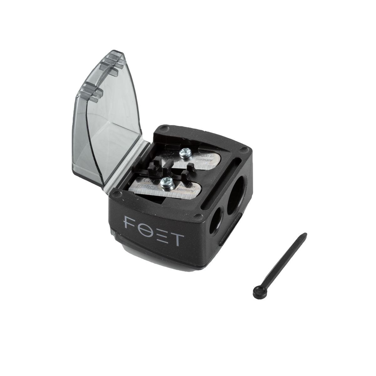 Создать идеальный макияж поможет косметика Foet! А придать идеальную заостренную форму грифелю косметического карандаша поможет компактная точилка. Точилка имеет два отверстия: маленькое – 8 мм для карандашей для бровей и большое – 12 мм для сатиновых помад. Двойные острые лезвия не ломают и не зажевывают карандаш, позволяя добиться ровного среза. Удобный съемный прозрачный контейнер для стружки сохранит чистоту ваших рук и косметички. А специальная палочка-аппликатор, входящая в комплект, позволит легко очистить лезвия инструмента после использования.