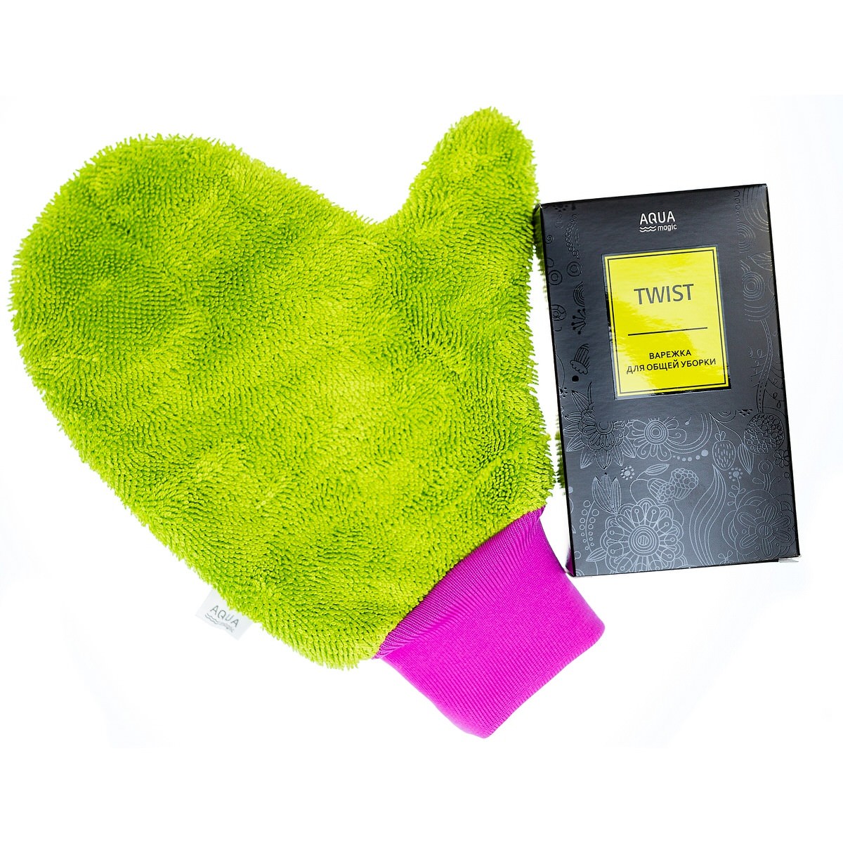 Варежка AQUAmagic Twist для удаления сложных загрязнений. Подходит как для сухой, так и для влажной уборки. Поглощает и удерживает влагу, грязь и пыль в больших объемах, проникает в труднодоступные углубления и щели.
